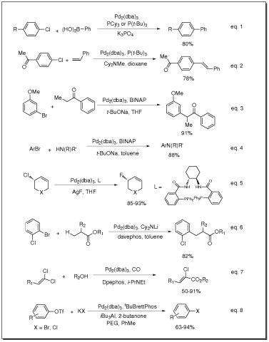 - Catalyst for Suzuki coupling of aryl chlorides (eq. 1)