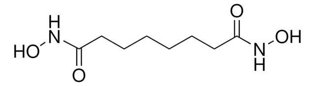 Suberoyl bis-hydroxamic acid (SBHA) is a Histone deacetylase (HDAC) inhibitor. SBHA inhibits the activity of HDAC1 and HDAC3 with IC50 values of 250 and 300 nM, respectively. SBHA inhibits proliferation, and induces apoptosis in several cancer cell lines. SBHA has been shown to activate Notch signaling in medullary thyroid carcinoma (MTC) cells.
