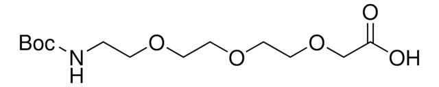 t-Boc-N-amido-PEG3-CH2CO2H is a heterobifunctional, PEGylated crosslinker featuring a Boc-protected amine at one end and a carboxyl group at the other. The hydrophillic PEG linker facilitates solubility in biological applications. t-Boc-N-amido-PEG3-CH2CO2H can be used for bioconjugation or as a building block for synthesis of small molecules, conjugates of small molecules and/or biomolecules, or other tool compounds for chemical biology and medicinal chemistry that require ligation. Examples of applications include its synthetic incorporation into antibody-drug conjugates or proteolysis-targeting chimeras (PROTAC® molecules) for targeted protein degradation.