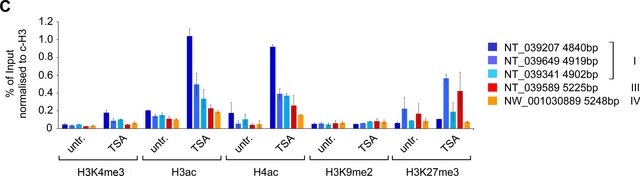 Chromatin immunoprecipitation was performed using the Magna ChIP HiSens kit (cat# 17-10460), 1 µL Anti-trimethyl-Histone H3 (Lys4) antibody (cat# 07-473) , 20 µL Protein A/G beads, and 1e6 crosslinked HeLa cell chromatin followed by DNA purification using magnetic beads. Libraries were prepared from Input and ChIP DNA samples using standard protocols with Illumina barcoded adapters, and analyzed on Illumina HiSeq instrument. An excess of eighteen million reads from FastQ files were mapped using Bowtie (http://bowtie-bio.sourceforge.net/manual.shtml) following TagDust (http://genome.gsc.riken.jp/osc/english/dataresource/) tag removal. Peaks were identified using MACS (http://luelab.dfci.harvard.edu/MACS/), with peaks and reads visualized as a custom track in UCSC Genome Browser (http://genome.ucsc.edu) from BigWig and BED files. The highest 25% of peaks identified in the 07-473 dataset showed 99% overlap with peaks identified in the ENCODE H3K4me3 BROAD Histone track for HeLa S3.