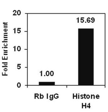 Sonicated chromatin prepared from HeLa cells (1 X 106 cell equivalents per IP) were subjected to chromatin immunoprecipitation using 2 µL of either normal rabbit IgG or 2 µL of Anti-Histone H4 antibody and the Magna ChIP A Kit (Cat. # 17-610).