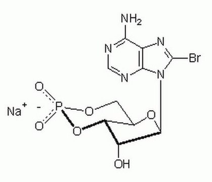 Adenosine 3′,5′-cyclic Monophosphate, 8-Bromo-, Sodium Salt, Cell-permeable cAMP analog that has greater resistance to phosphodiesterases than cAMP.
