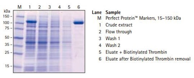 S-protein Agarose specifically retains S•Tag fusion proteins. Binding can be performed in a column or batch mode. Elution is possible using slightly denaturing conditions or using a specific protease, such as thrombin or enterokinase, with appropriate recombinant proteins. The capacity of S-protein Agarose varies and is based on the size and folding characteristics of a given target protein.