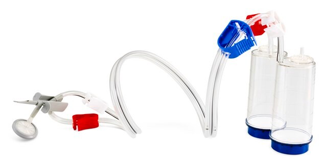 Steritest® NEO Device is a membrane filtration device for sterility testing of filterable pharmaceutical products. The device simplifies every aspect of testing, from handling to traceability. The closed system minimizes false positives and offers the highest levels of quality and reliability. This device ensures that pharmaceutical products are never exposed to the environment during the testing process. This test system offers an optimized and fully regulatory compliant testing process, when used with the Steritest® Symbio pump, specific accessories and high-quality culture media and rinsing fluids. The device is gamma sterilized and double packed for the quick transfer into sterility testing environments, simplifying decontamination procedures and saving time. A vented needle adapter vents and transfers the test product from large volume containers with a septum to the Steritest® NEO devices. The blue based canisters indicate mixed cellulose esters (MCE) membrane, which provides an optimal filtration flow rate for standard products.