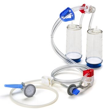 Nylon 66 adapter (for needle), PVC tubing (double lumen), mixed cellulose esters (MCE) membrane, stainless steel (for needle), styrene-acrylonitrile (SAN) (For Canister)