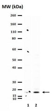 Western Blotting Analysis (WB): A 1:2,000 dilution of a representative lot of thisantibody detected Histone H3.3 K27M in HEK-293 cells transfected with HistoneH3.3 K27M mutant.