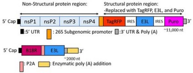 The Simplicon TagRFP RNA (E3L) Kit was developed to enable the evaluation of the Simplicon expression system in your cell line(s). For example, it may be used to determine optimal transfection conditions to express the self-replicating RNA of your interest through using Simplicon Cloning Vector (E3L) (Part #:SCR724) in hard-to- transfect somatic or primary cells.