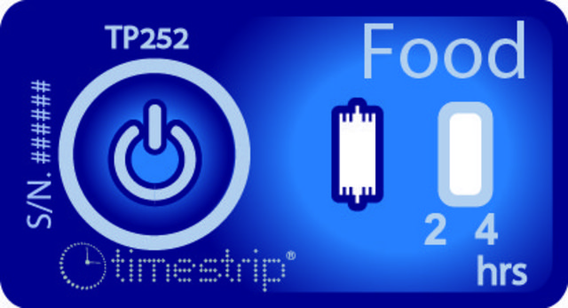 Food is a Timestrip® temperature indicator that shows how long your product has been above refrigerated temperature (5 °C/41 °F).
