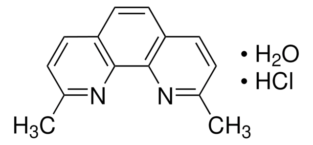 Neocuproine hydrochloride monohydrate has been used in measuring copper dissolution in Cu–Ni alloys using colorimetric method. It has also been used in preparing complexing agent solution in studying the antioxidant capacity assays in biological samples based on Cu reducing complexes.