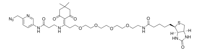 Dde biotin picolyl azide incorporates a copper-chelating motif that dramatically accelerates the Cu(I)-catalyzed azide-alkyne cycloaddition (CuAAC) reaction under conditions relevant to biomolecular labeling. Discovery of azides with an internal Cu(I)-chelating motif greatly enhances the utility of the CuAAC reaction for various applications. Some examples are monitoring the dynamic glycan biosynthesis in living organisms; sensitive detection of metabolically-labeled proteins, DNAs, and RNAs; and many other applications where rate acceleration and reduced cell toxicity are highly desirable.