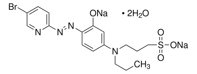 2-(5-Bromo-2-pyridylazo)-5-[N-propyl-N-(3-sulfopropyl)amino]phenol disodium salt dihydrate may be used as a reagent for the determination of copper and iron by flow injection-catalytic photometric method using serial flow cell.