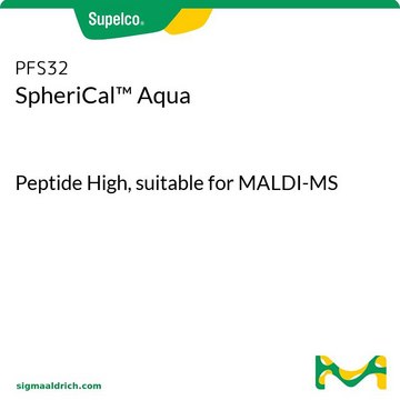 SpheriCal™ Aqua is ideal for calibration with aqueous systems commonly used in life sciences, e.g., matrices DHB, HCCA and SA or solvents such as water and acetonitrile, although ionization is preferred with alkali cations. Each vial of SpheriCal™ Neat contains sufficient calibration standard for over 100 calibration spots.