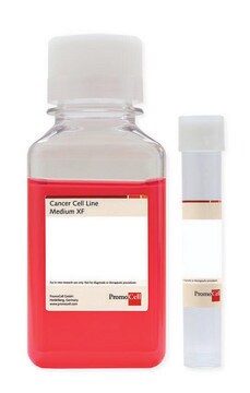 Cancer Cell Line Medium XF is a cell culture medium developed for the standardized in vitro cultivation of established human cancer cell lines. Its serum-free and xeno-free formulation provides a culture environment devoid of all stimuli originating from non-defined materials. Thus, it has no ill-defined components such as fetal calf serum, extracts or hydrolysates and exhibits very low lot-to-lot variability. The medium consists of a bottle of Basal Medium and one vial of SupplementMix. Adding the SupplementMix to the Basal Medium results in the complete medium.