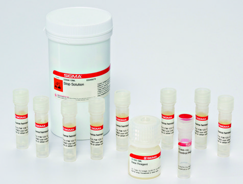 The ProteoMass Guanidination Kit allows you to enhance MALDI-MS sensitivity, increase sequence coverage, and identify peptides with greater confidence. Following proteolytic digestion, peptides with C-terminal Arginine residues are ionized preferentially over peptides with C-terminal Lysine residues, leading to compromised sequence coverage and limited confidence during peptide mass fingerprint analysis. The ProteoMass Guanidination Kit efficiently and conveniently converts C-terminal Lysine residues to homoarginine, increasing MALDI signal strength and producing enhanced sequence coverage.