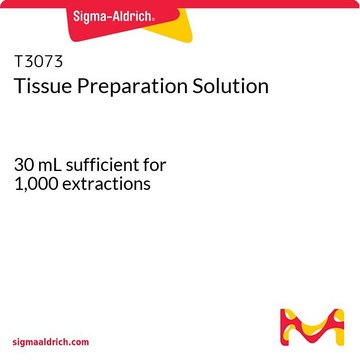 The Tissue Preparation Solution is intended for use with the Extract-N-Amp Tissue PCR kits, REDExtract-N-Amp Tissue PCR kits, and SYBR® Green Extract-N-Amp Tissue PCR kits. This product is intended to supplement the kit reagents, where there are many extractions.