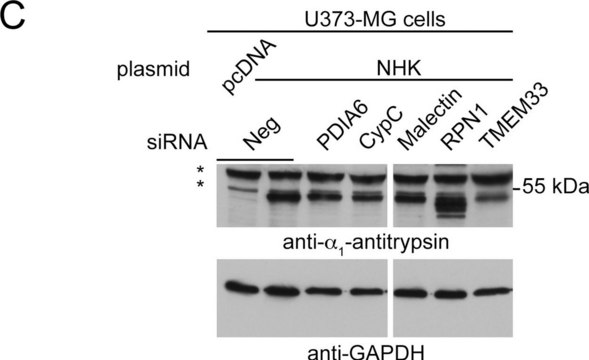 Anti-α1-antitrypsin antibody (diluted 1: 1000) can be used in ELISA. It can also be used for probing immunoblots to identify A1AT. Additionally, it can be used in Ouchterlony double diffusion.