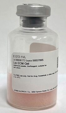 ECM gel contains laminin as a major component, collagen type IV, heparan sulfate proteoglycan, entactin, and other minor components. ECM gel undergoes thermally activated polymerization when brought to 20-40°C to form a reconstituted basement membrane. The process of gelation is reversible. Addition of collagen type IV to ECM gel increases polymerization, whereas, addition of collagen type I, fibronectin, or heparin, does not. PC12 cells show neurite formation within 2 days when grown on a thin layer of ECM Gel.