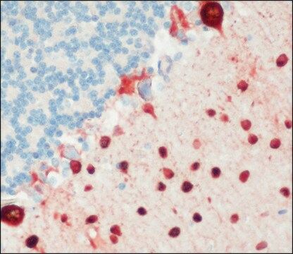 immunohistochemistry: 5-10 μg/mL using formalin-fixed paraffin embedded rat cerebellum., indirect immunofluorescence: 10-20 μg/mL using BLO-11 cells., western blot: 1-2 μg/mL using mouse muscle extracts.