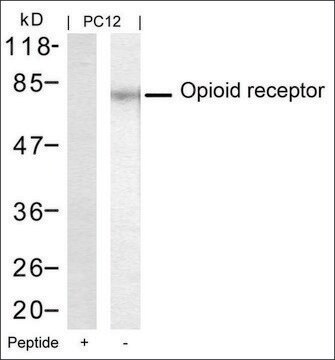 Anti-OPRM1 (Ab-375) antibody produced in rabbit has been used in Western blotting.