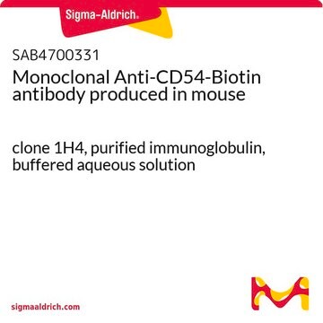 The antibody 1H4 reacts with CD54 (ICAM-1), a 85-110 kDa type I transmembrane glycoprotein (receptor for rhinovirus) expressed on activated endothelial cells, T lymphocytes, B lymphocytes, monocytes, macrophages, granulocytes and dendritic cells; the expression of CD54 is upregulated by activation.