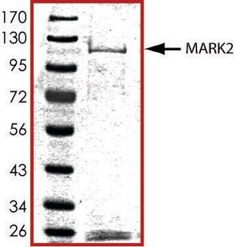 MARK2 or microtubule affinity-regulating kinase 2 is a member of the Par-1 family of serine/threonine protein kinases. MARK2 is an important regulator of cell polarity in epithelial and neuronal cells and controls the stability of microtubules through phosphorylation and inactivation of several microtubule-associating proteins. MARK2 is a key target of H. pylori CagA in the disorganization of gastric epithelial architecture underlying mucosal damage, inflammation, and carcinogenesis. MARK2 phosphorylates kinesin-like motor protein GAKIN/KIF13B to regulate axon formation. MARK2 function in the establishment of T cell polarity following engagement to an APC.