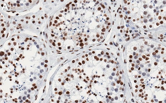 Immunohistochemistry (Paraffin) Analysis: A 1:1,000 dilution of this antibody detected SMARCA2 in human testis tissue sections.