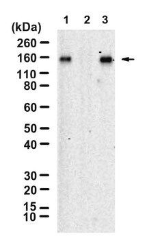 Western Blotting Analysis (WB): A 1:10,000 dilution of this antibody detected LATS1 phosphorylated on Threonine 1079 in lysate from overnight serum starved HeLa cells treated for 30 minutes with Calyculin A (50 nM) and Okadaic Acid (500 nM).