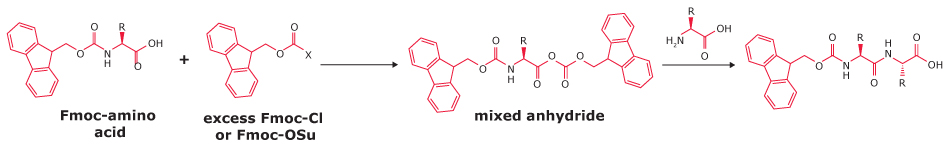 Reaction of the Fmoc attachment reagent with an already formed Fmoc-amino acid generates dipeptide impurities. These can cause double insertion of the target amino acid during peptide synthesis.
