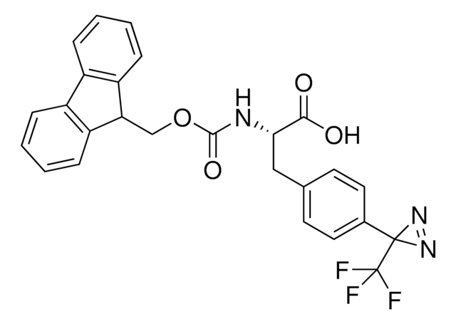Fmoc-L-Photo-Phe-OH is a diazirine-containing, Fmoc-protected phenylalanine amino acid and multifunctional photo-crosslinker. Its incorporation into peptides or small-molecule probes and tools allows for photoaffinity labeling of cellular targets and protein-protein interactions upon UV light (∼360 nm) irradiation to form a covalent bond. This and other multifunctional probe building blocks will continue to accelerate drug discovery research for probing cellular mechanisms, target ID/validation, and understanding traditionally undruggable targets. An unprotected version is also available as 907340.