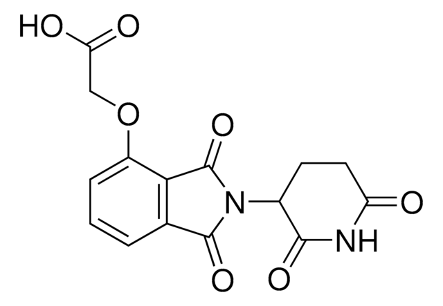 A functionalized cereblon ligand for development of Thalidomide based PROTACs. Allows rapid conjugation with carboxyl linkers due to presence of amine group via peptide coupling reactions. Amenable for linker attachement via reductive amination, and a basic building block for making protein degrader library.