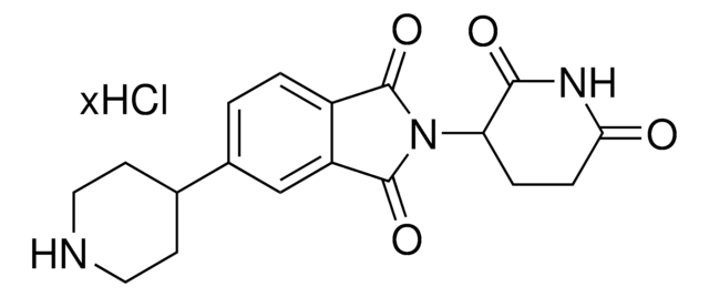 A functionalized cereblon ligand for development of Thalidomide based PROTACs. Allows rapid conjugation with carboxyl linkers due to presence of amine group via peptide coupling reactions. Amenable for linker attachement via reductive amination, and a basic building block for making protein degrader library.