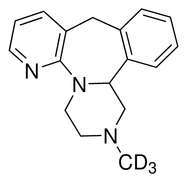 A stable-labeled internal standard suitable for quantitative mass spectrometry testing applications in forensic analysis, clinical toxicology, or urine drug testing. Mirtazapine is a tetracyclic antidepressant marketed under the trade names Remeron, Avanza, or Zispin for treatment of depression.
