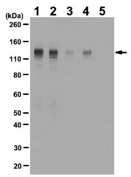FGFR-1 具有 19 个同工型和 8 个潜在的糖基化位点,将未成熟形式的受体的预期大小增加至 120 kDa,将成熟形式的受体的预期大小增加至 145 kDa(Hisaoka, K., et al. (2011).JBC.286(24):21118-21128)。