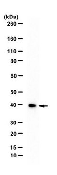 Recognizes WDR5, MW 36 kDa. A related protein band of 43 kDa that was blocked by the immunizing peptide was also detected. Identification of WDR5 protein at 36 kDa was confirmed with siRNA knockdown by an independent laboratory.