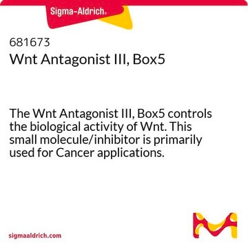The Wnt Antagonist III, Box5 controls the biological activity of Wnt. This small molecule/inhibitor is primarily used for Cancer applications.