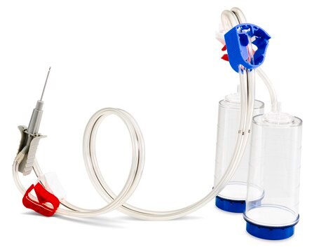 Nylon 66 adapter (for needle), PVC tubing (double lumen), mixed cellulose esters (MCE) membrane, plain filter, stainless steel (for needle), styrene-acrylonitrile (SAN) (for canister)