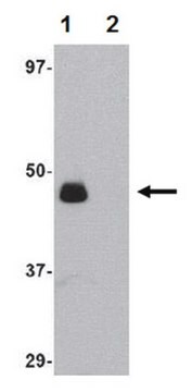 ~47 kDa observed. Despite its predicted molecular weight of 27 kDa, IL-34 will often run at higher molecular weight in SDS-PAGE.