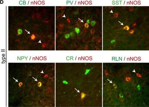 间接免疫过氧化物酶以1:1,000-1:2,000的稀释度使用先前的批次。 该抗体对先前批次的福尔马林固定、石蜡包埋的大鼠小脑组织切片起作用。 固定似乎不会影响MAB1572’s检测小清蛋白的能力。