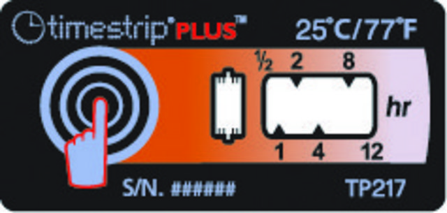 Timestrip® PLUS indicators record elapsed time at or above a specified threshold temperature in a simple and quick way. They are small, self-adhesive labels that can be attached to or integrated into a product or device.