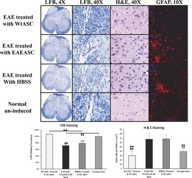 该抗体在免疫印迹分析中可与GFAP发生特异性反应,在免疫组织化学染色中可标记星形胶质细胞、Bergmann胶质细胞和弹性软骨的软骨细胞。抗体与冷冻或酒精固定组织切片中的胶质细胞特异性抗原反应。