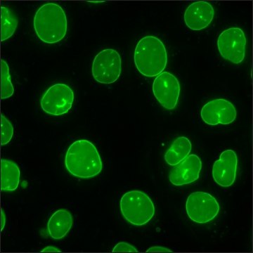 This product is a human U2OS cell line in which the genomic LaminB1 gene has been endogenously tagged with a Green Fluorescent Protein (GFP) gene using CompoZr® Zinc Finger Nuclease technology. Integration resulted in endogenous expression of the fusion protein in which GFP is attached to the N-terminus of LaminB1. Fluorescence imaging shows the characteristic LaminB1 nuclear expression. This stable cell line was expanded from a single clone. The target′s gene regulation and corresponding protein function are preserved in contrast to cell lines with overexpression via an exogenous promoter.