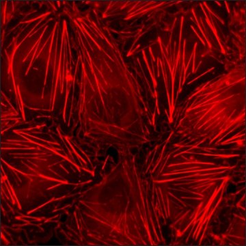 This product is a human U2OS cell line in which the genomic ACTB gene has been endogenously tagged with a Red Fluorescent Protein (RFP) gene using CompoZr® Zinc Finger Nuclease technology. Integration resulted in endogenous expression of the fusion protein in which RFP is attached to the N-terminus of actin. Fluorescence imaging shows that the actin can polymerize to form the characteristic pattern of actin filaments. Addition of Cytochalasin B to the cell line causes the expected shortening of actin filaments. This stable cell line was expanded from a single clone. The target′s gene regulation and corresponding protein function are preserved in contrast to cell lines with overexpression via an exogenous promoter.