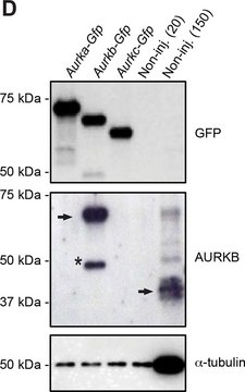 抗绿色荧光蛋白(GFP)单克隆抗体通过免疫印迹、斑点印迹、免疫沉淀、免疫组织化学、免疫荧光、染色质免疫沉淀和酶联免疫吸附测定(ELISA)确认GFP (27 kDa)。抗体与原核表达载体表达的融合蛋白反应。