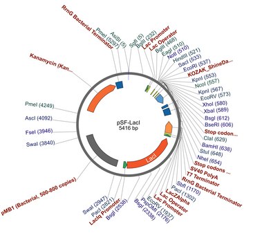 Promoter Expression Level: This plasmid contains the Lac operon promoter which is inducible using IPTG to regulate transgene expression.