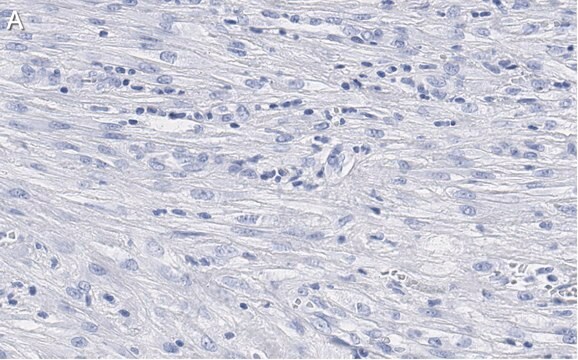 Immunohistochemistry (Paraffin) Analysis: A 1:100 dilution from a representative lot detected -Actin in human uterus and human stomach tissue sections.