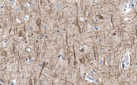 Immunohistochemistry (Paraffin) Analysis: A 1:100 dilution from a representative lot detected Neurofilament H in human brain tissue sections.