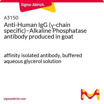 Human IgGs regulate immunological responses to allergy and pathogenic infections. IgGs have also been implicated in complement fixation and autoimmune disorders. Goat anti-human IgG (gamma-chain specific)-alkaline phosphatase antibody is specific for human IgG when tested against human IgA, IgG, IgM, Bence Jones Kappa, and Lambda myeloma proteins.
