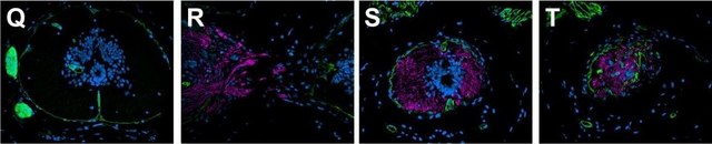 通过对福尔马林固定石蜡包埋的人或动物组织切片进行间接免疫荧光标记和斑点杂交免疫测定,确定抗层粘连蛋白抗体的特异性。 通过间接免疫荧光分析发现,抗体可以对未被酶促反应掩蔽的人和动物组织进行特异性基底膜染色。 在斑点杂交印迹免疫测定中,兔抗层粘连蛋白抗体与层粘连蛋白反应,但不与纤连蛋白、玻连蛋白、IV型胶原蛋白或A、B和C型硫酸软骨素反应。层粘连蛋白的亲和分离抗体与人、哺乳动物、禽类、爬行动物和两栖动物来源的层粘连蛋白反应。