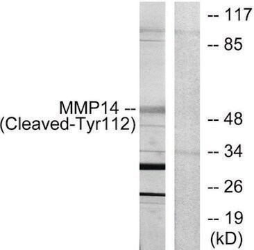 Anti-MMP14 (Cleaved-Tyr112) Antibody detects endogenous levels of fragment of activated MMP14 (Cleaved-Tyr112) protein.