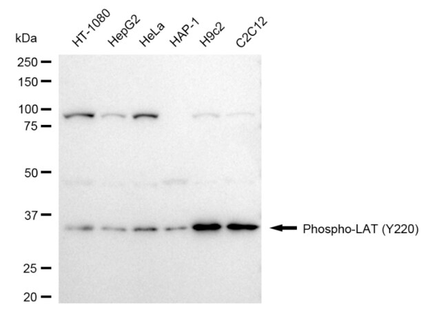 A synthesized peptide corresponding to a sequence within amino acids 184-198 of human Phospho-LAT (Y220) [NP_055202.1].
